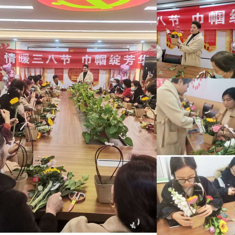 街道妇联举办庆“三八”手工插花活动,花艺老师现场向大家讲解插花技巧,女同胞们精心搭配自己喜欢的花束,美丽心情如花绽放。
