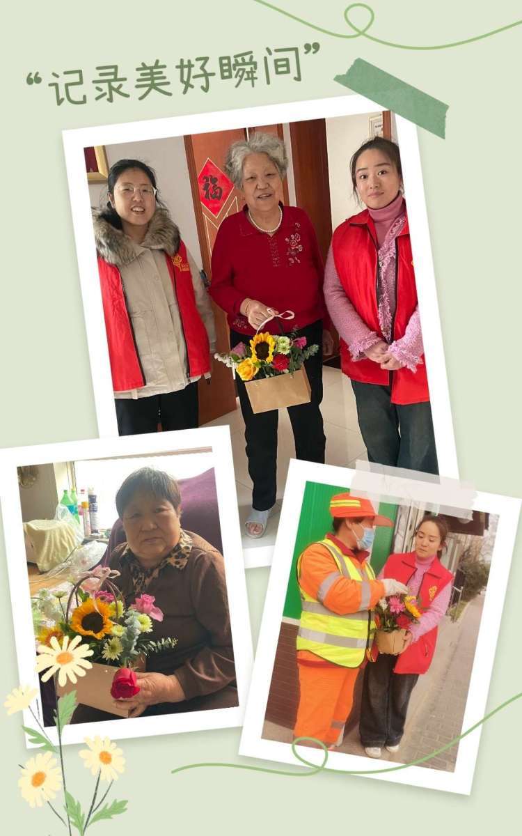 汉阳、道口社区的年轻干部们带着自己精心制作的美丽花束走访慰问辖区留守老人,陪她们拉家常,送上社区对老人的一份份关爱。