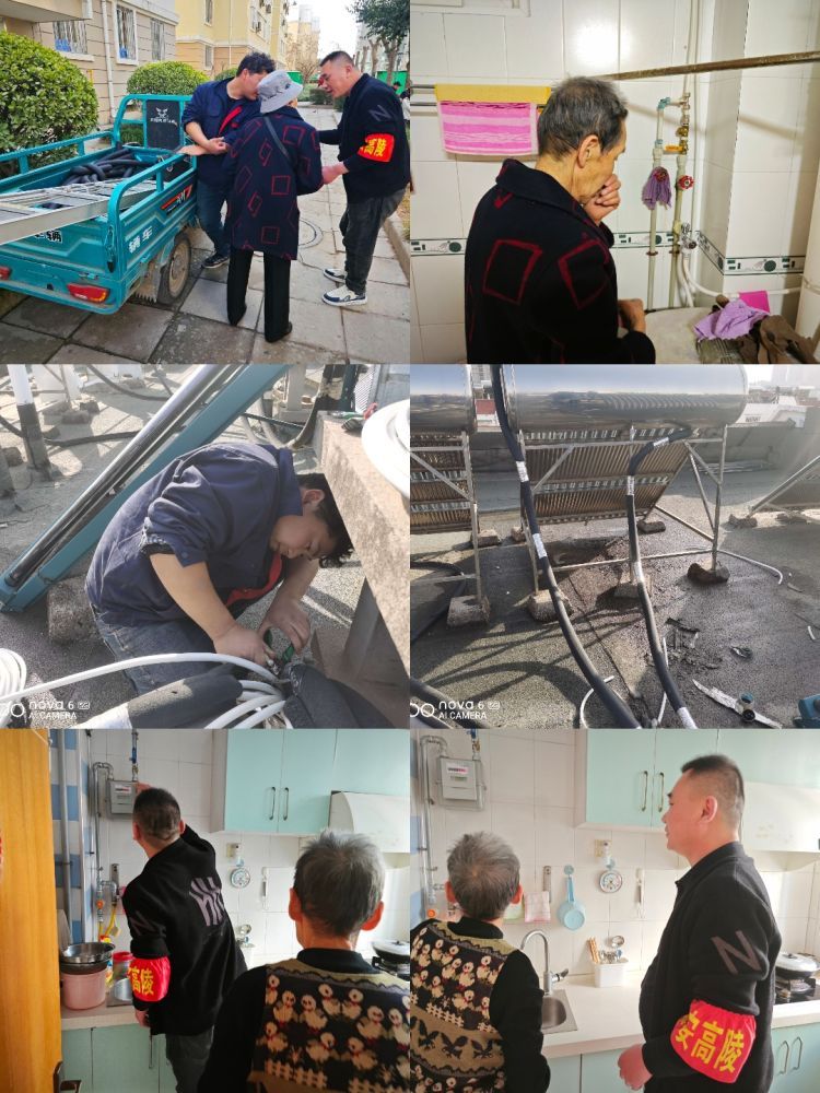 社区网格员在接到求助信息后立刻联系维修员进行入户检修,经过实地勘察反复测试太阳能性能后,确定是由于进水管和出水管损坏引起的问题。维修员便开始修理管道,更换新的水管,解决漏水问题。