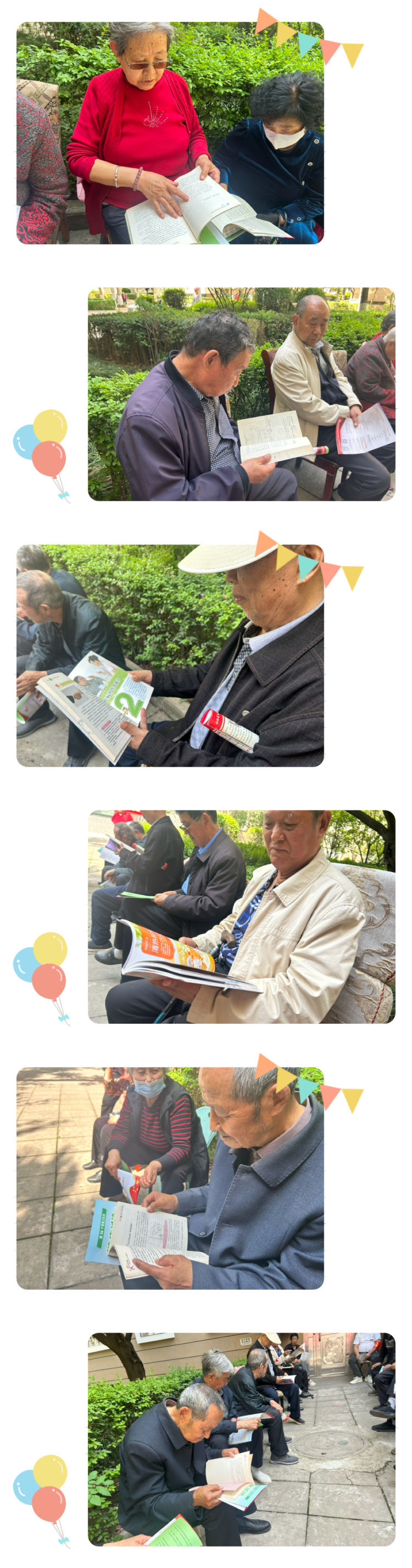 长庆龙凤园社区工作人员和辖区的叔叔阿姨们一起分享读书心得,活动中大家就老年慢性病的预防和治疗展开激烈讨论,共同倡导绿色健康饮食,保持作息规律,适当锻炼,通过本次读书分享活动,大家对养生保健方面的意识普遍得到提高。