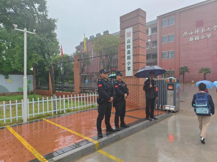 工作中,执勤警力始终坚守在人流、车流较密集的学校等重点路段,指挥过往车辆、学生家长及学生们有序通行,提醒广大驾驶人雨天注意安全驾驶。
