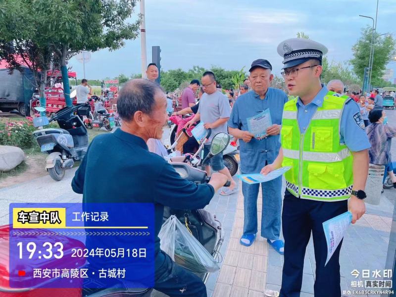5月18日下午,西安市公安局高陵分局交警大队车宣中队值班警力走进辖区古城村,以“一村一警”为抓手,深入开展交通安全宣传活动,通过向村民发放宣传手册、讲解交通安全知识等方式开展宣传,让村民深入学习交通安全知识,同时与村民亲切交流,了解农村群众常用出行方式,分析当前交通安全形势。并强调,随着交通工具的普及,交通违法行为也在增多,大家要学会知危险、会避险,学习交通法规,拒绝酒后驾驶,杜绝三轮车、农用车违法载人,骑乘二、三轮摩托车、电动自行车要佩戴安全头盔,乘车要系好安全带。针对农村地区老年人驾驶电动车、三轮车的数量较多,且交通安全意识相对淡薄的实际,包村民辅警通过讲解典型案例,警醒村民秉着对自身、对家庭负责任的态度,坚决拒绝侥幸心理,文明驾驶、安全出行。