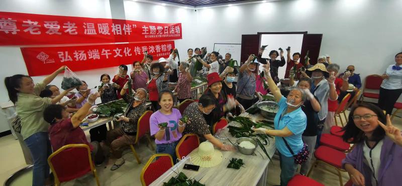 有了包粽子讲民俗,我们还有送粽子献爱心环节。社区里活动不方便的居民和到不了现场的老人们同样是我们牵挂的对象,包好的粽子由社区工作人员分装好赠送给他们,向他们送去我们的端午问候。
