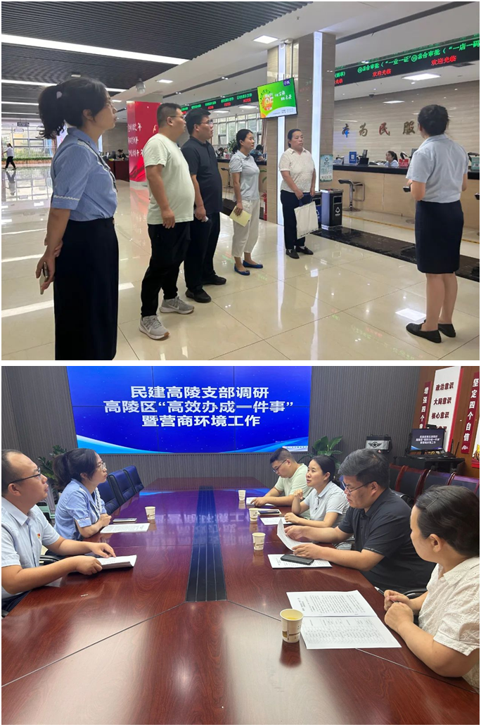 7月29日,民建高陵区支部一行四人到高陵区数据和行政审批服务局开展“高效办成一件事”专题调研。