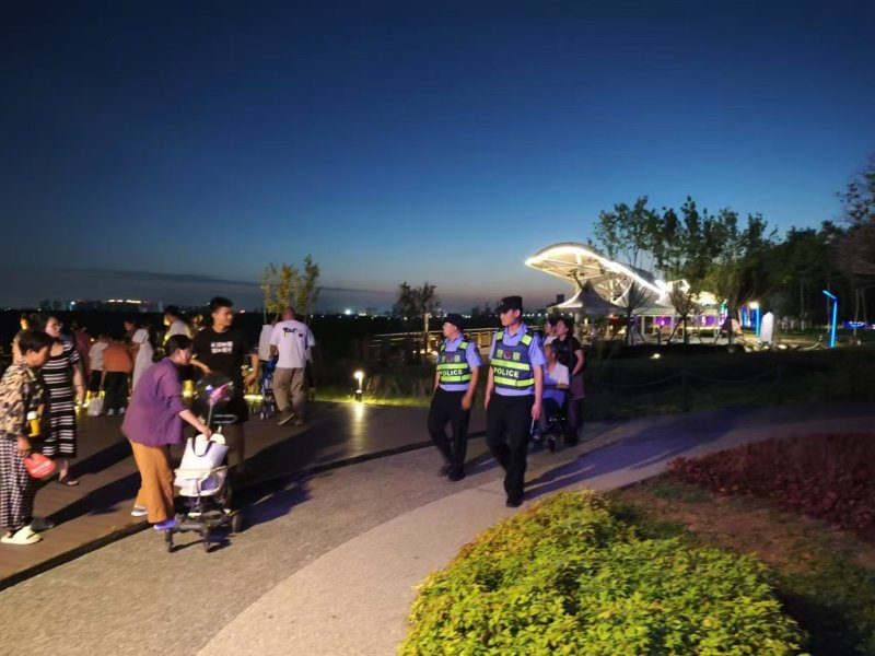 2024年8月13日晚,公安高陵分局渭桥派出所联合分局巡特警大队、交警大队持续在辖区泾渭分明景区开展巡防工作。