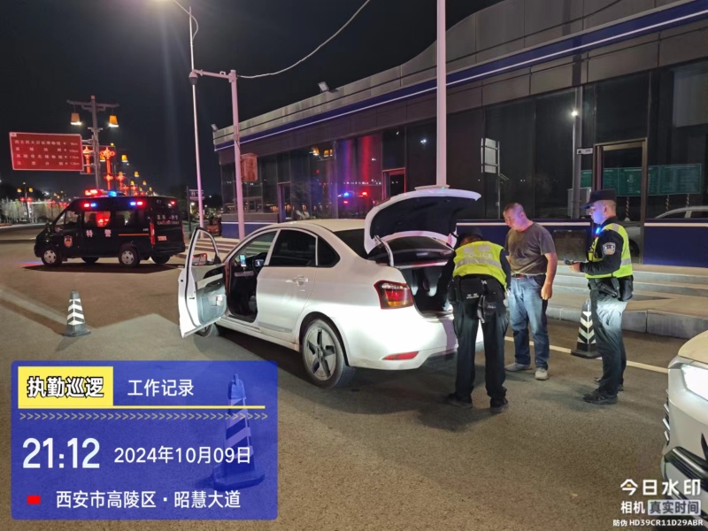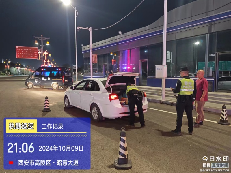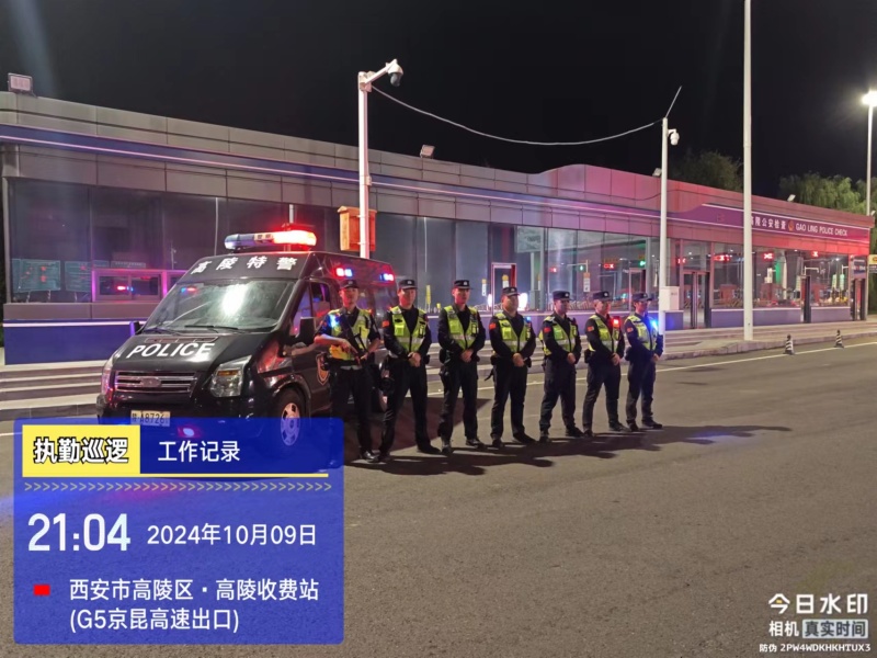 10月9日晚,西安市公安局高陵分局巡特警大队二中队出动警力9人警车2辆,在西禹高速高陵收费站依托治安检查站开展武装盘查。