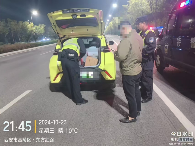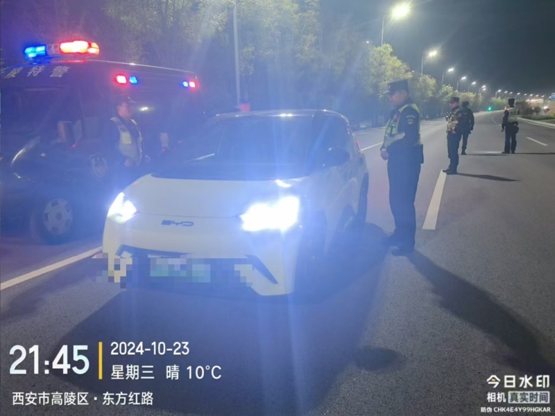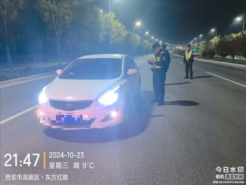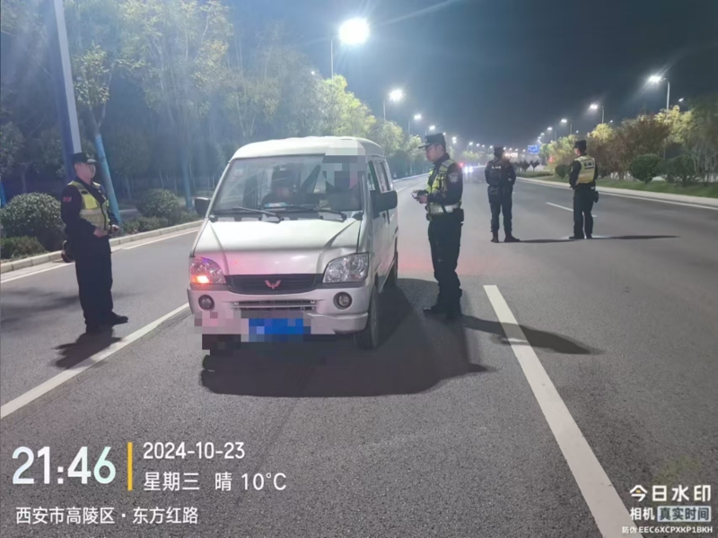 10月23日晚,西安市公安局高陵分局巡特警大队出动警力 8人,警车1辆,在高陵辖区东方红路西路组织开展武装设卡盘查工作。