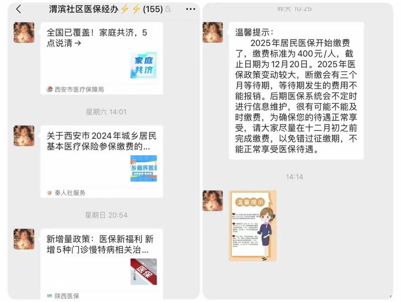 为扎实做好2025年度城乡居民医保参保缴费工作,切实提高辖区居民对医保政策的知晓率和居民参保率,保障群众正常享受医疗保险待遇,渭滨社区多措并举开展医保缴费宣传活动,全力推进城乡居民基本医疗保险征缴工作再发力、再提高,确保广大群众应保尽保。