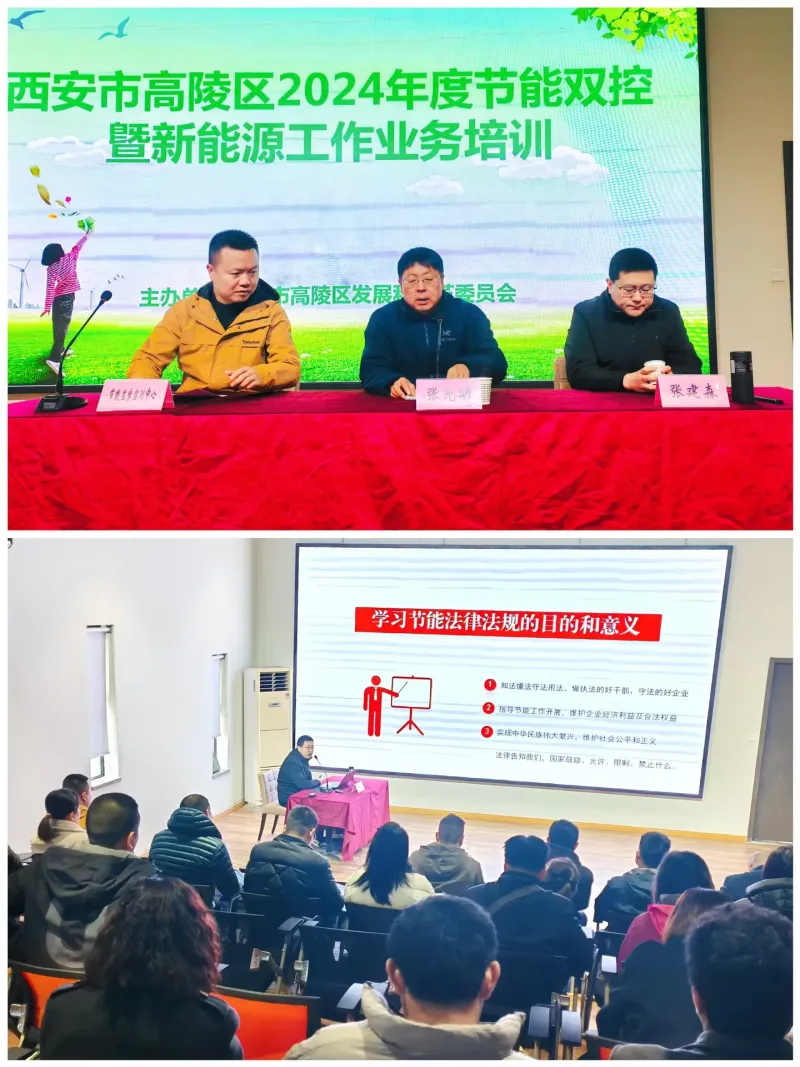 为深入贯彻国家节能法规政策,提升节能管理工作人员素质推动高陵区节能工作。近日,区发改委举办2024年度节能双控暨新能源业务培训班,能源主管部门、重点用能单位、辖区光伏企业60余人参加,特邀市节能监测支队张建森、市航发新能源总经理靳永良老师以现场授课和问题研讨方式对“双碳”“双控”等业务进行专题解读。