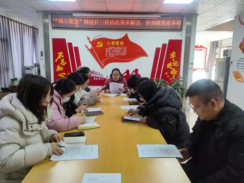 为深化打造社区“社民互通六聚车道”服务体系,为居民提供更加优质的社区服务,泾渭中路社区以聚“路”人才车道为载体,以“周三聚慧”赋能日为引擎,培养一支“全能型”社工队伍,实现社区工作人员不分条线职能,一人多岗、一专多能,有效解决服务群众“最后一公里”。2月12日,泾渭中路社区开展“周三聚慧”赋能日民政政策解读,提升社区工作者民政业务素质和服务水平,促进社区民政工作有效落实。