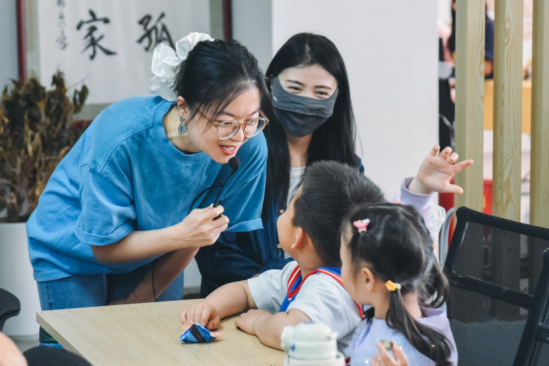 故事讲解结束后,老师带领孩子们进入到有趣的手工制作环节。工作人员为孩子们分发了制作青蛙卡片的材料,家长们耐心指导孩子们分步完成受精卵、蝌蚪、幼蛙、成蛙四个阶段的立体造型,制作出一只只可爱的青蛙卡片。从小小的受精卵,到可爱的小蝌蚪,再到逐渐长出四肢、尾巴消失的幼蛙,最后成长为成熟的青蛙,孩子们直观了解了青蛙的生长发育过程,激发了他们对大自然生物的探索欲望。