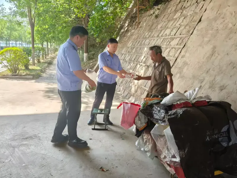近日,持续的高温天气给流浪乞讨人员的生活带来严峻考验。为确保流入辖区的流浪乞讨人员得到及时有效的救助,高陵区救助管理站迅速行动,联合城管部门积极开展街面巡查工作,为流浪乞讨人员送去清凉与关怀。