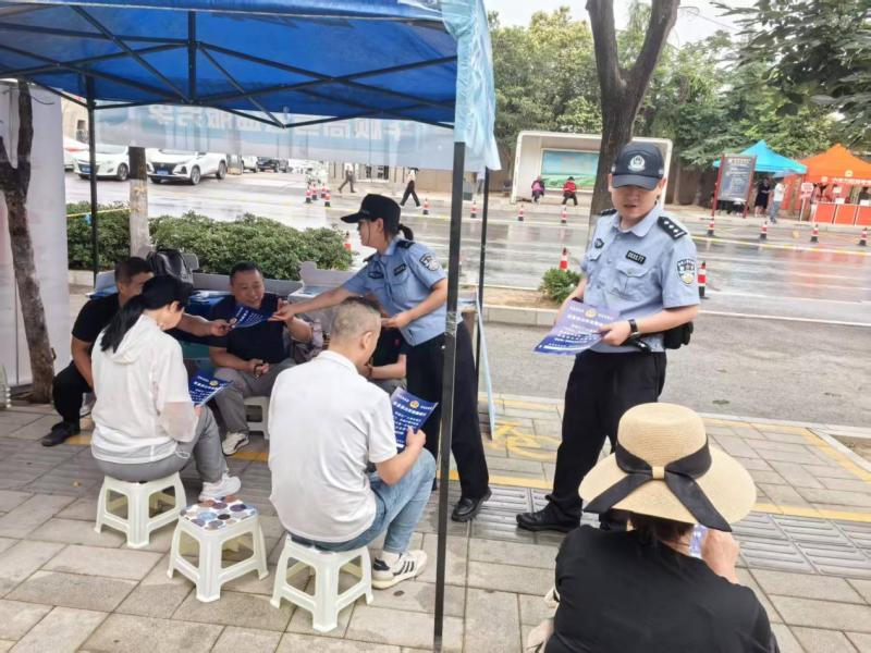 为提高广大考生及家长识骗防骗能力,西安市公安局高陵分局崇皇派出所立足主防职能,将反诈阵地前移,在西安市高陵区高陵三中高考考点周边对候考考生及学生家长开展反电信诈骗宣传活动。