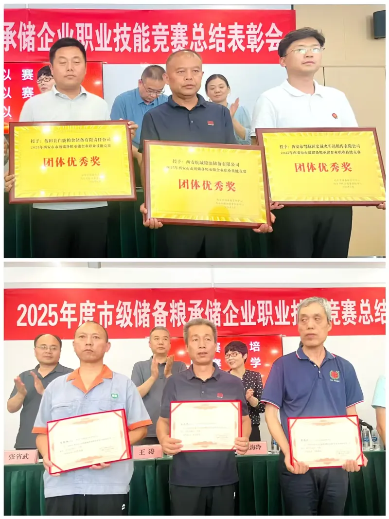 6月12日,在2025年度西安市市级储备粮承储企业职业技能竞赛总结表彰大会上,我区丰泰粮食储备有限公司荣获团体优秀奖,张大元同志荣获“保管员项目三等奖”。