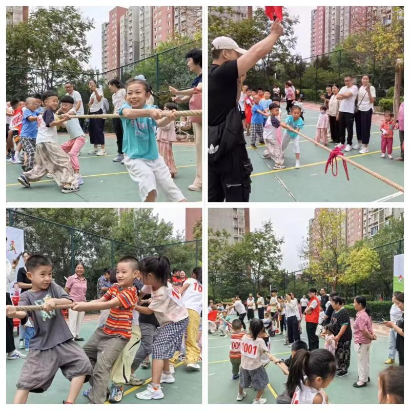 拔河比赛:孩子们紧握长绳、齐心协力,身体后倾的每一个动作都充满力量,场边“加油”声震耳欲聋,团队凝聚力在此刻尽情彰显。