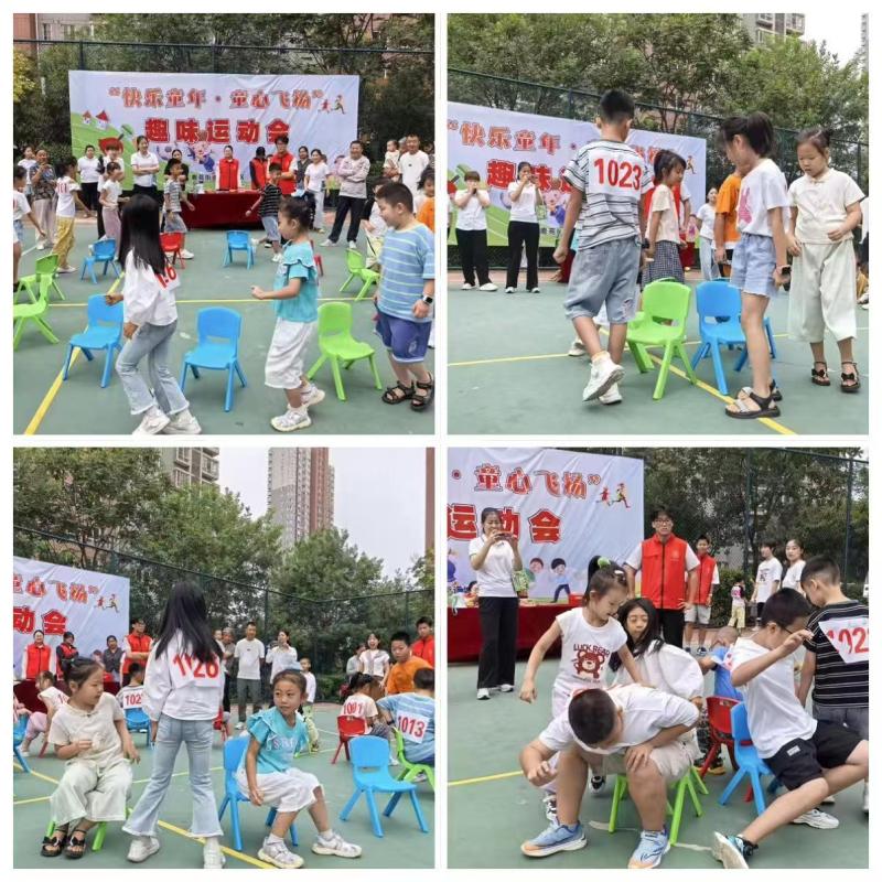 抢凳子游戏:在裁判员哨声停下的瞬间,孩子们眼疾手快抢占座位,灵活反应与欢乐氛围感染着在场每一个人。