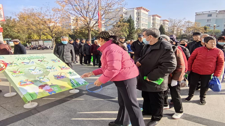 活动以社区工作人员讲解“什么是垃圾分类”为引,开始了此次垃圾分类主题活动。活动由以“书”换“蔬”和垃圾分类趣味游戏两部分组成。其中以“书”换“蔬”是最受居民欢迎的项目,居民们纷纷带着旧书前来兑换,社区工作人员一边发放蔬菜,一边耐心讲解垃圾分类知识,并为居民发放垃圾分类宣传页。这个创意十足的环保行动让居民们用闲置书籍兑换新鲜蔬菜,既实现了资源循环利用,又让垃圾分类变得更有温度。垃圾分类游戏项目,分为垃圾分类套圈游戏和垃圾分类飞行棋,游戏项目将趣味性和知识性相结合,居民们在欢声笑语中巩固了垃圾分类知识,也获得了实用礼品,提升了居民垃圾分类的积极性。