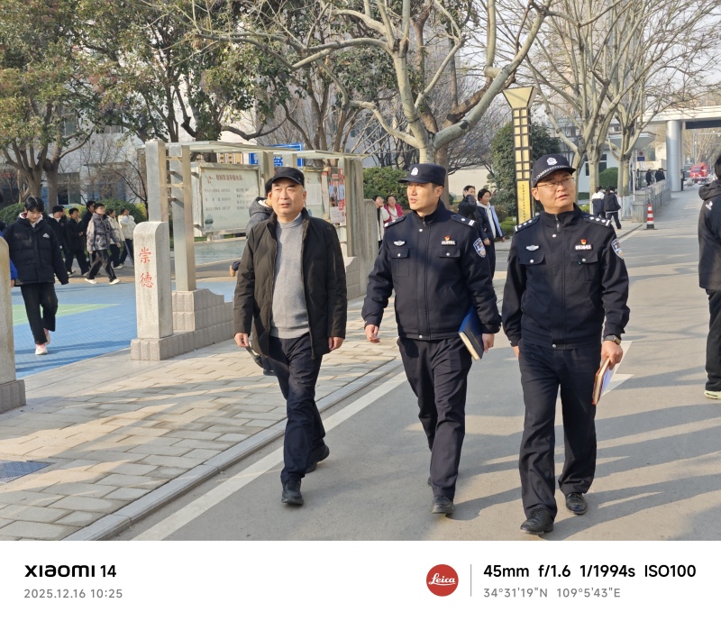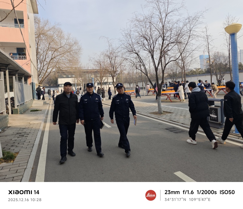2025年12月16日,西安市公安局高陵分局鹿苑派出所副所长带领社区警务队队长、昭慧社区民警前往高陵一中开展“金盾护苗”行动。