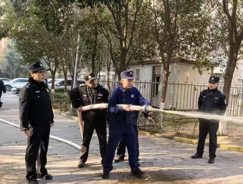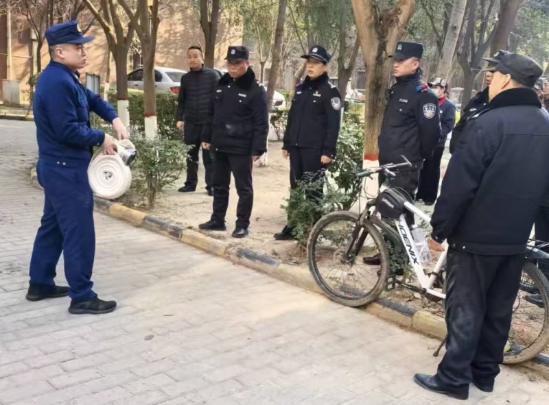 2025年12月23日,西安市公安局高陵分局鹿苑派出所昭慧社区民辅警联合高陵区消防救援大队、昭慧社区工作人员,组织辖区鸿禧花园、泾渭尚城、金桂苑等辖区内人口数量较多的小区开展消防演练活动。