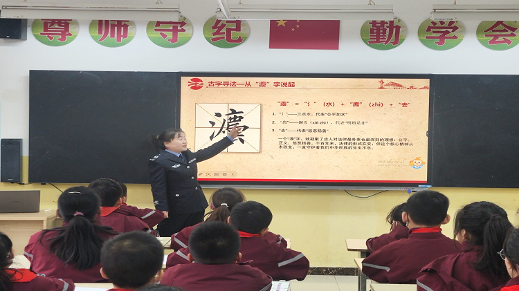 为进一步加强青少年法治宣传教育,树立知法、学法、懂法、守法的法治观念,在第十二个国家宪法日来临之际,高陵区司法局姬家司法所走进经开区第十六小学,以“宪”进校园 ,“灋”护成长为主题为师生们带来一场生动有趣的法治启蒙课。