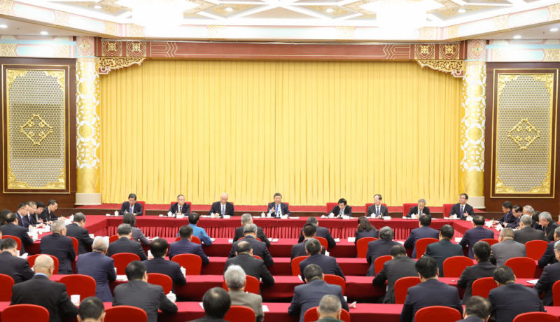 中共中央政治局常委、全国政协主席王沪宁,中共中央政治局常委、中央办公厅主任蔡奇参加看望和讨论。