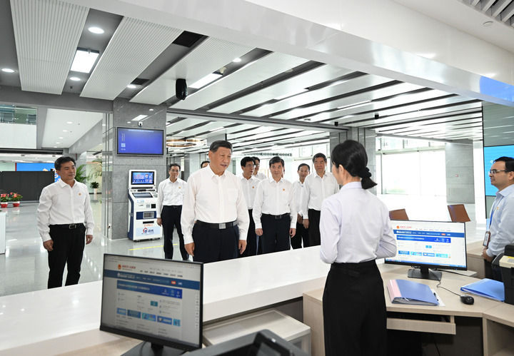 10月15日至16日,中共中央总书记、国家主席、中央军委主席习近平在福建考察。这是16日上午,习近平在中国(福建)自由贸易试验区厦门片区考察时,同综合服务大厅窗口工作人员亲切交流。新华社记者 燕雁 摄