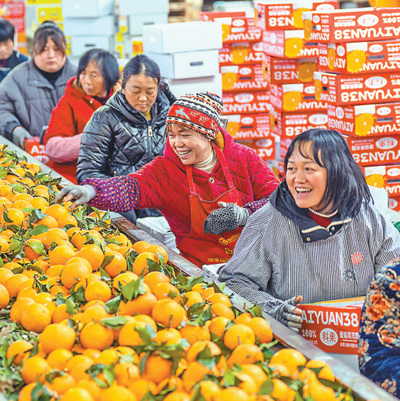 在彭山区江口街道,果农周光成聘请专业“飞手”熟练地操作着无人机,很快就将一筐筐耙耙柑,从山上果园吊运到山下平地。分拣、打包、过秤、装箱……一箱箱耙耙柑码放得整整齐齐,这份“冬日的甜蜜”,很快就将装车发往全国各地。