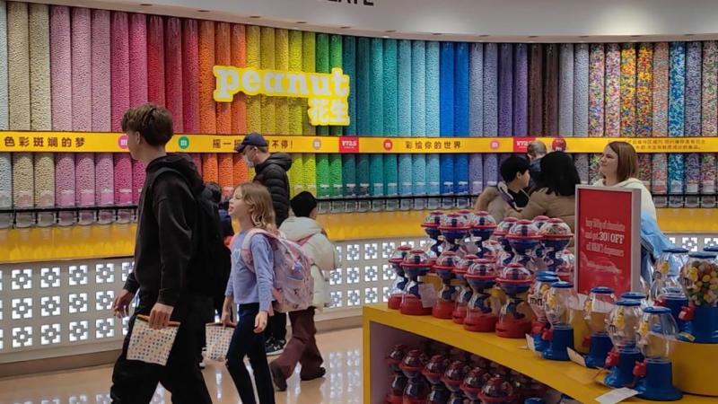 在南京路上的第一食品商店,大白兔奶糖、汪裕泰茶叶、石库门黄酒都是老外喜欢的“老字号”伴手礼。同样搭上这波消费热潮的还有各种新“国货”品牌。