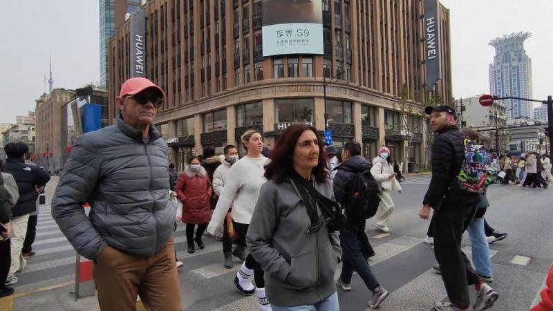 熙熙攘攘的“中华商业第一街”南京路上,各种迎新鲜花、彩纸、横幅已经全部到位,一派红火景象。这里是外籍游客来上海必“打卡”的一站。