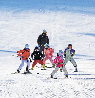 | 冰雪游 内蒙古自治区呼伦贝尔市扎兰屯金龙山滑雪场,游客在滑雪。 韩颖群摄(人民视觉) |