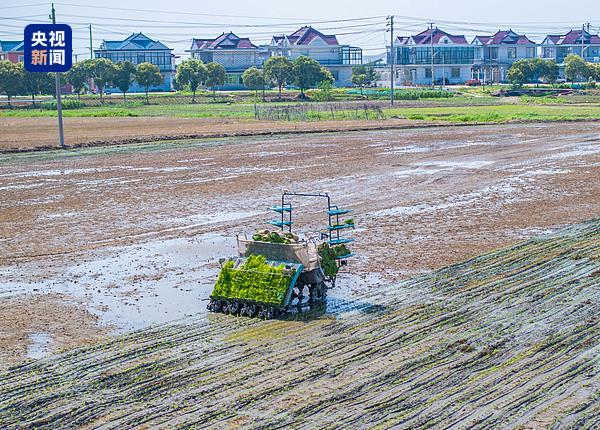 2025年6月16日,江苏泰州,北斗+5G赋能无人驾驶插秧机智能化作业。