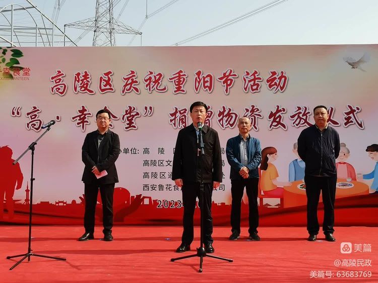 金秋结硕果,人寿添花香。10月23日是中华民族的传统节日——九九重阳节,高陵区在灰堆村“高·幸食堂”举行庆祝重阳节活动暨“高 · 幸食堂”捐赠物资发放仪式。西安鲁花食用油有限公司向全区40家“高·幸食堂”捐赠米、面、油、调味品等共计10万元物资。区政府副区长张敏涛出席活动。区民政局局长刘林、区民政局分管负责同志,各街办分管负责同志及民政办主任,西安鲁花食用油有限公司代表、40家“高 · 幸食堂”代表,500名老年人参加活动。