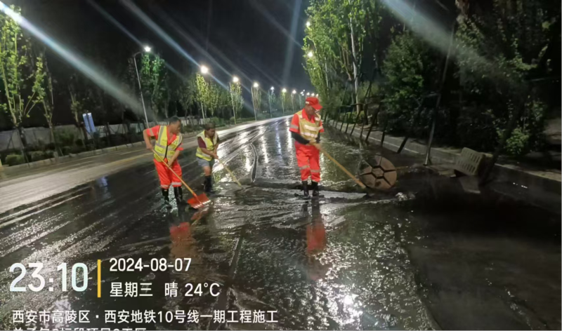 雨停积水退去后,8月8日凌晨起,城管市容环卫工作者又投入到了紧张的道路冲洗工作中…