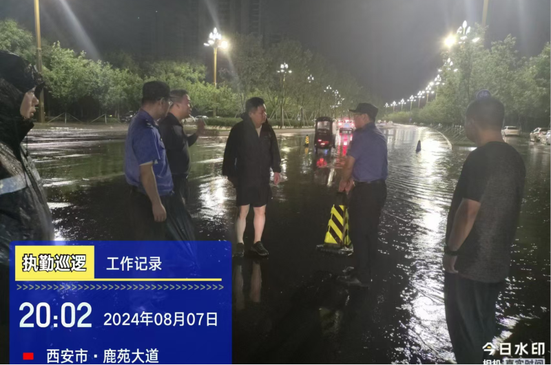 8月7日晚,突降暴雨,按照预警指令要求,区城管执法局坚守岗位,及时调度,迅速启动《城管系统防汛工作呼叫应答机制》,全力开展防汛抢险工作。