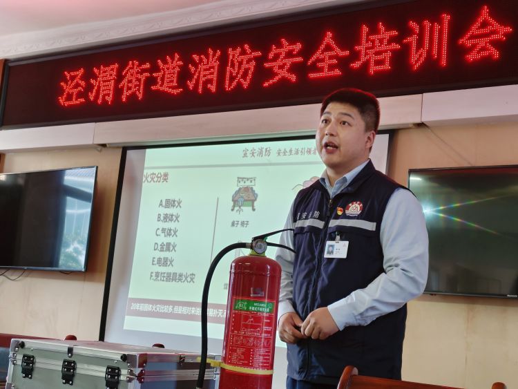 培训会上,泾渭街道办事处党工委副书记朱哲就消防安全工作提出要以“以防为主,防预结合,生命至上”的责任感与紧迫感,强调了此次消防安全知识专题培训的重要性和必要性。
