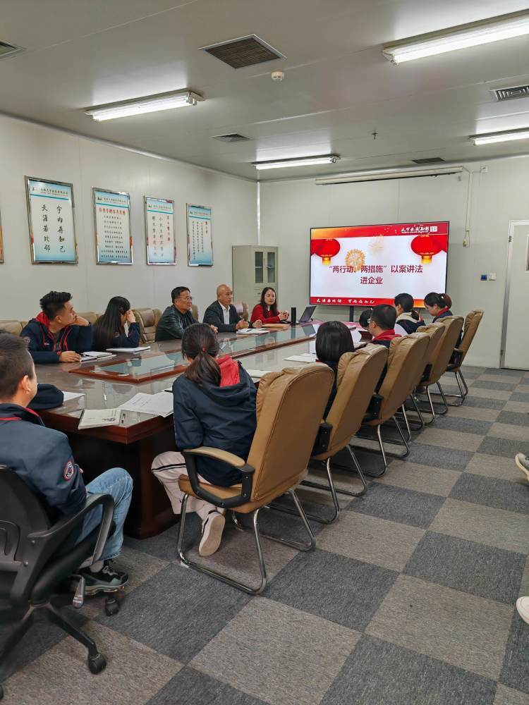 为扎实推进全区政法机关服务高质量发展“两行动、两措施”宣传工作,10月27日下午,泾渭司法所与鹿苑法律服务所到陕西天宇制药有限公司开展“两行动、两措施”以案讲法进企业活动,为辖区企业及企业员工进行与自身利益相关的法律知识宣传。