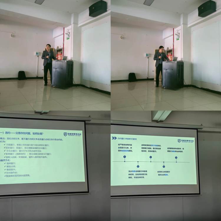 活动中,宽明律所的王鑫律师结合企业生产经营实际,围绕合同概述,合同主体合同标的,合同权利和义务,合同履行,合同违约等方面进行了讲解,对企业在经营管理中涉及劳动合同,网络舆情等方面的法律困惑进行了现场解答,帮助企业分析潜在的法律风险,并提出针对性的防范措施和法律建议,增强了企业对法律风险的预测和预防。