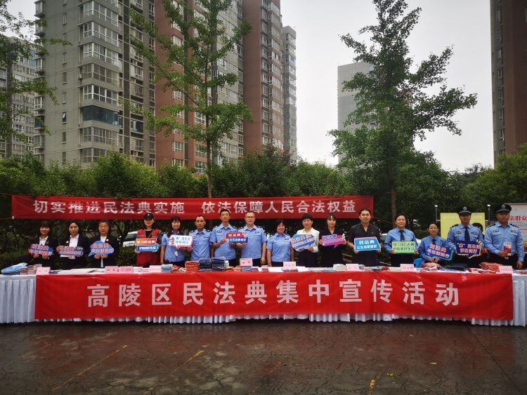 今年5月28日是《中华人民共和国民法典》颁布三周年,为全面贯彻落实党的二十大精神,贯彻落实习近平总书记来陕考察重要讲话重要指示,推动民法典宣传学习走深、走实,高陵区司法局积极安排并组织全区各单位各部门以“美好生活·民法典相伴”为主题广泛开展民法典学习宣传活动。5月26日,高陵区司法局联合区法院、区检察院、公安分局、鹿苑街道、区妇联、区公证处、区法律援助中心等单位在高陵区鹿苑街道城西社区天下荣郡小区联合开展大型民法典集中宣传活动。