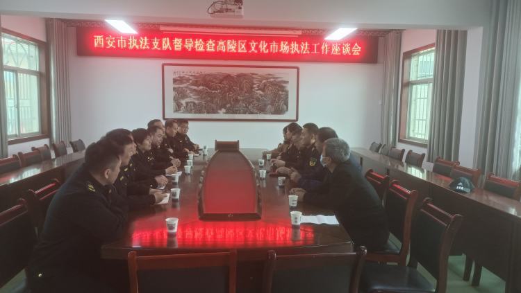 3月22日上午,西安市文化市场综合执法支队一大队长郭润霞带队一行8人对高陵区文化市场综合执法大队的文化市场执法工作进行了督导检查和座谈研讨,高陵区文化市场综合执法大队全体人员参加。