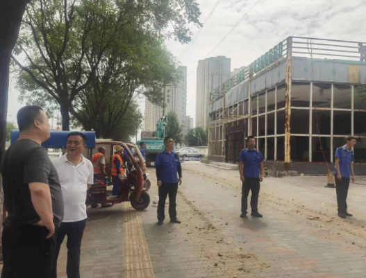 为提升我区城市面貌、美化人居环境,推进“两拆一提升”三年行动,集中纠治一店多牌、破损陈旧、违规设置、移动牌匾、楼顶广告等问题,拆除整治一批影响城市形象的、群众反映强烈、妨碍公共安全的违法建设,推动全域城市建管水平提升;高陵区住建局监察大队队长带队,联合街办、自规和城管等部门对馨悦茗园售楼部进行拆除。
