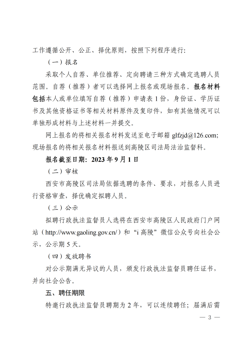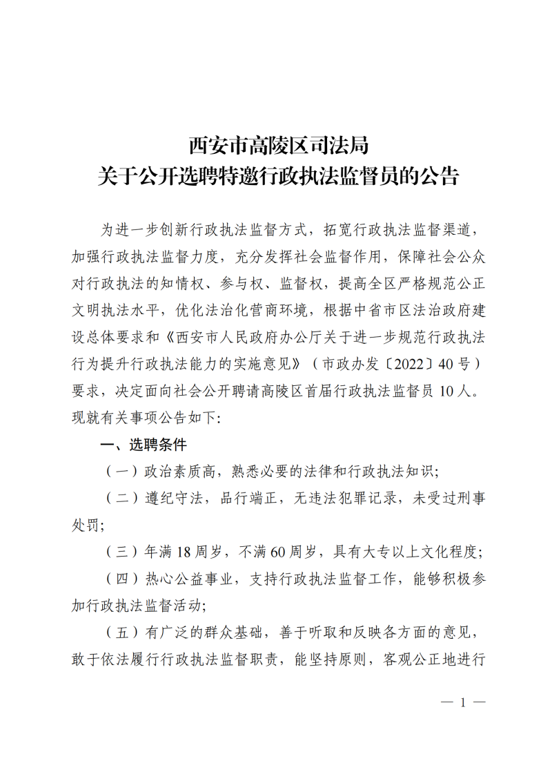 西安市高陵区司法局关于公开选聘特邀行政执法监督员的公告