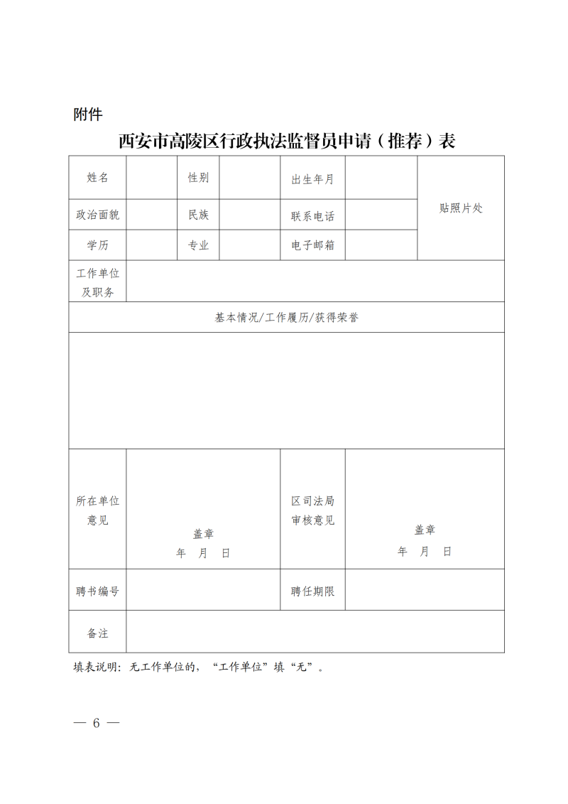 附件西安市高陵区行政执法监督员申请(推荐)表.docx