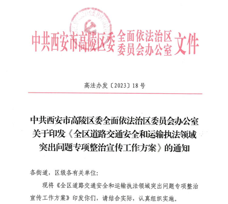 自道路交通安全和运输执法领域突出问题专项整治工作启动以来,高陵区全面贯彻落实中央和省委、市委关于专项整治工作部署要求,不断加大宣传力度、拓宽宣传广度,持续营造专项整治浓厚氛围。