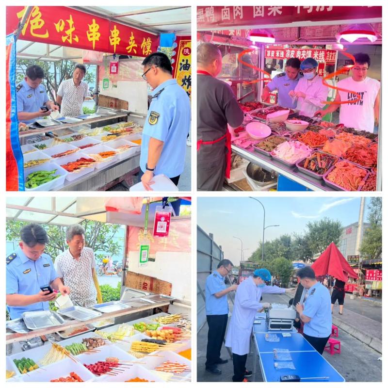 为持续提升早夜市食品安全水平,6月26日晚,高陵区食药检测中心参与了耿镇街办、高陵区城市管理执法局等多部门联合对渭阳五路夜市开展食品安全整治活动,对辖区夜市的食品安全管控能力进行全面规范提升。