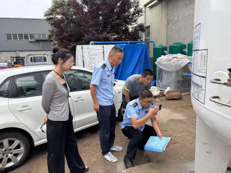 2024年7月3日,高陵区市场监督管理局特设科张长江科长带队,对陕西德仕金迪橡塑工业集团有限公司的1台压力容器进行现场勘查。