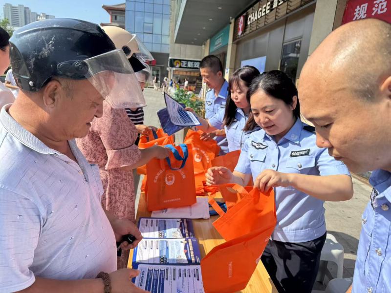 司法所干警与普法志愿者设立宣传点,向群众发放《中华人民共和国社区矫正法》单行本、折页图解、手提袋等宣传资料共300余份,现场讲解法条要点,并结合典型案例向居民讲解社区矫正的意义。