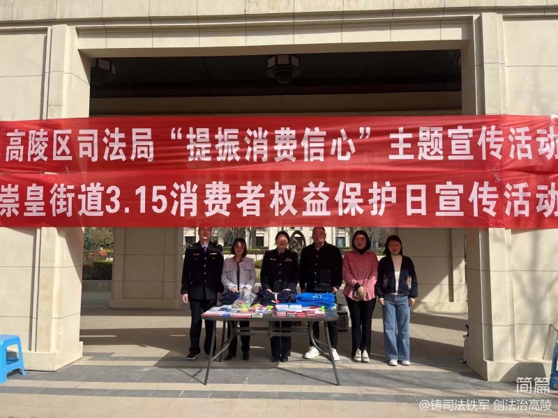 为进一步打造安全放心的消费环境,推动消费者权益保护协同共治,3月15日上午,崇皇司法所联合雅馨苑社区、阳光村镇崇皇分行在新城悦隽公园里小区开展3•15“提振消费信心”主题宣传活动。