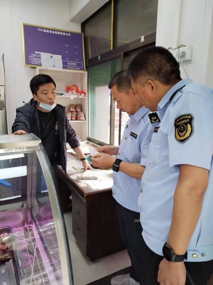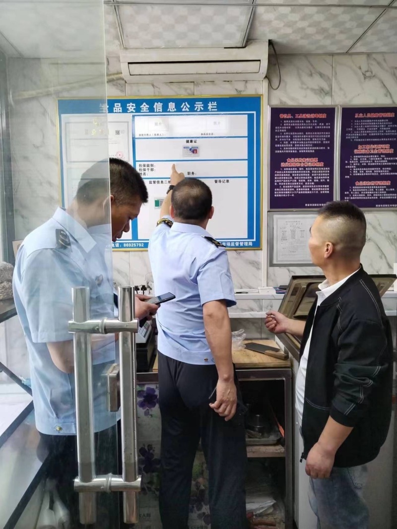 执法人员重点检查经营单位有无销售超过保质期、腐败变质等感官性状异常食品、食品经营许可证及从业人员健康证是否在有效期、操作间卫生是否整洁、进货台账及索证索票是否齐全、食品安全“两个责任”是否落实、是否存在食品安全管理制度不落实等情况。检查发现未建立监管档案、未悬挂两个责任公示牌、公示信息不全、索证索票不全、未张贴反餐饮浪费宣传资料等问题。执法人员现场下达了《食品安全督导检查表》,要求其立即整改,并重点要求销售卤肉制品的经营单位建立完整的台账记录、对销售5斤以上的落实实名登记。