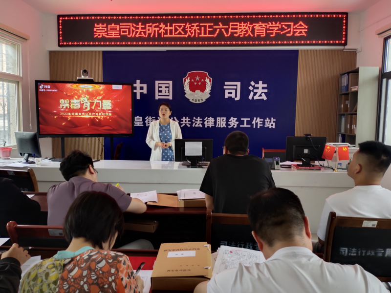 6月20日上午,崇皇司法所组织全体社区矫正对象进行集中教育,开展禁毒宣传活动。