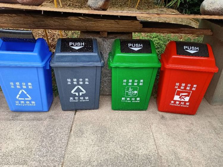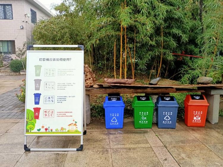 本博物馆按照工作要求,在每个展厅外都张贴了禁止乱投放垃圾的警示牌,在博物馆的醒目位置摆放垃圾分类的温馨提示,同时摆放分类垃圾桶。